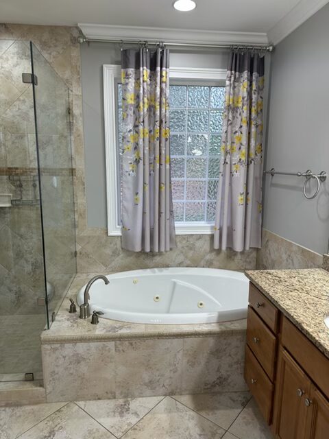 The Olympic project consisted of a partial kitchen renovation, a full master & guest bath renovation, and some other finishing touches such as paint, trim and countertops!